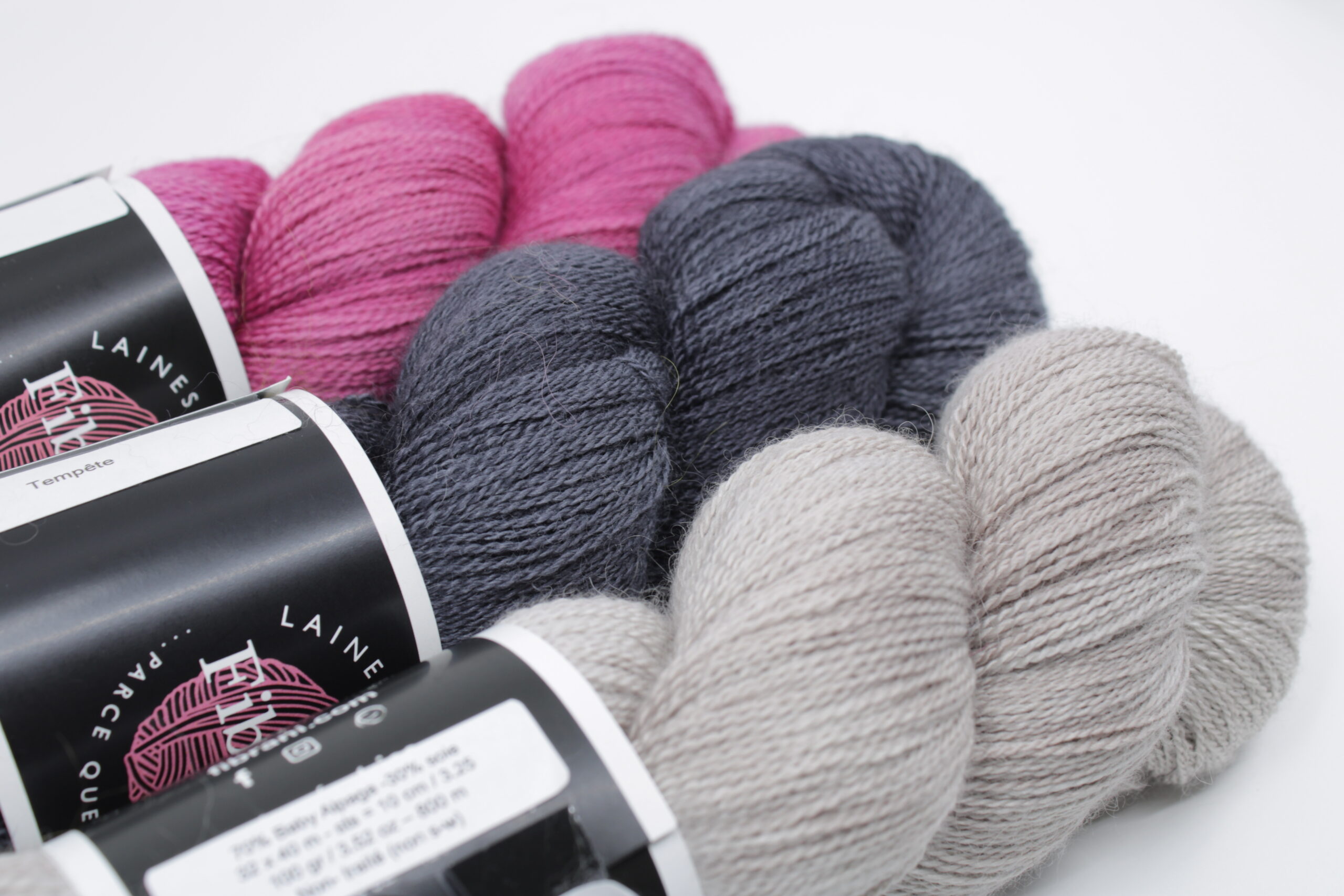 Très douce et agréable, Numa se tricote parfaitement avec un brin de fingering en remplacement du mohair par exemple. Il produit un fin halo.